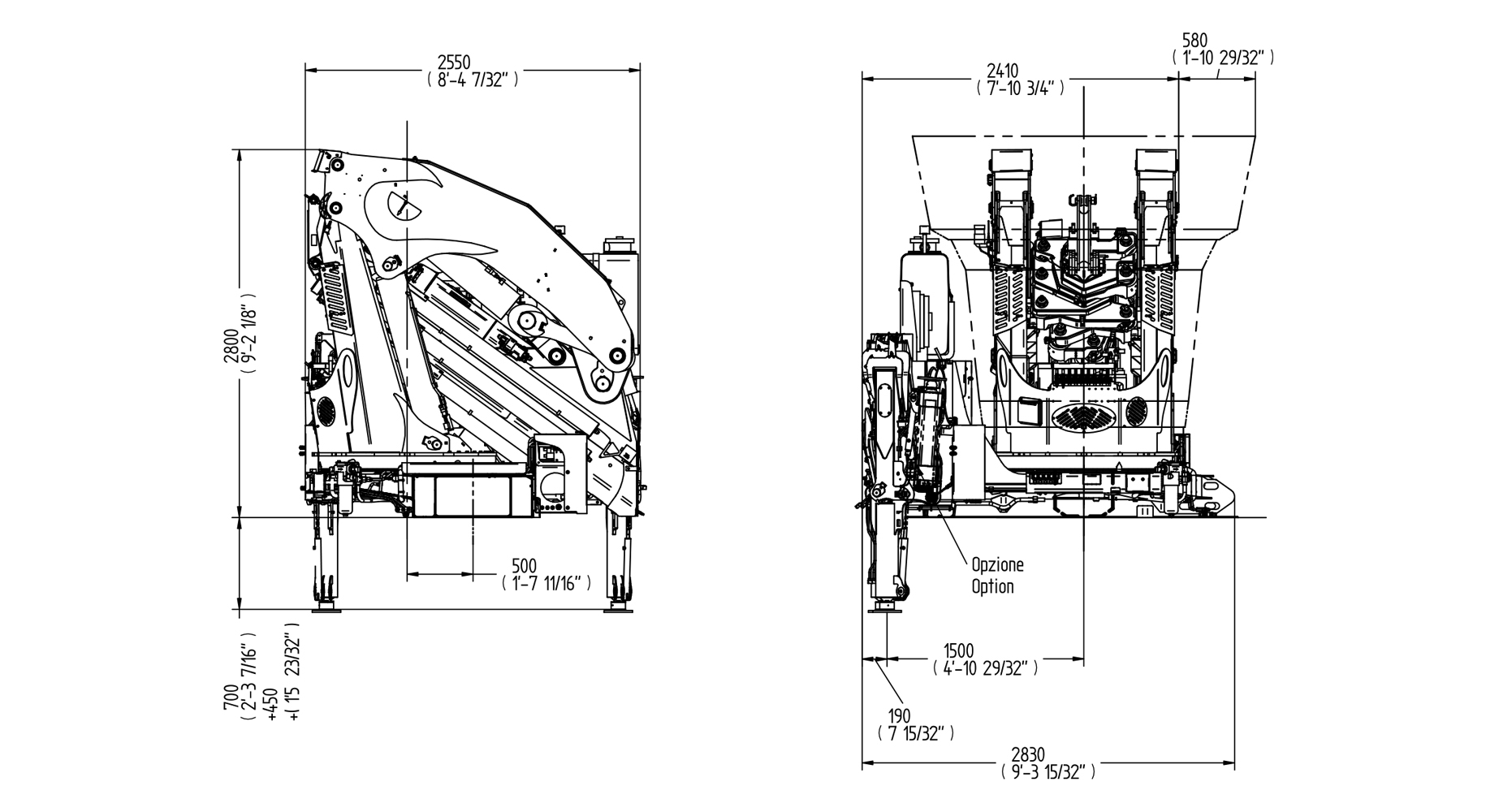 Crane E9 - Table of dimensions